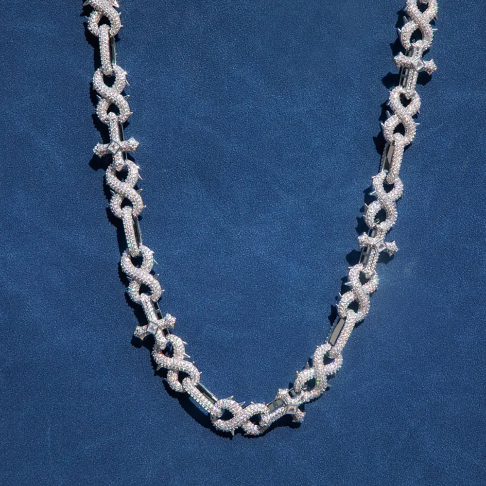 925 Sterling Silver VVS Diamond Miami Cuban Link Chain Pass Test Certified Moissanite Hip Hop Cross Link Infinity Necklace
